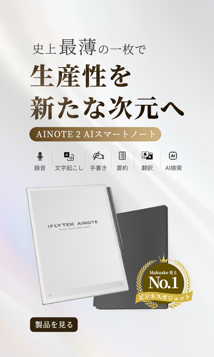 AI時代の仕事術を1台に集約する電子ペーパー「iFLYTEK AINOTE 2」が、2025年12月8日(月)より、公式ホームページ・家電量販店等にて、一般販売を開始いたします。