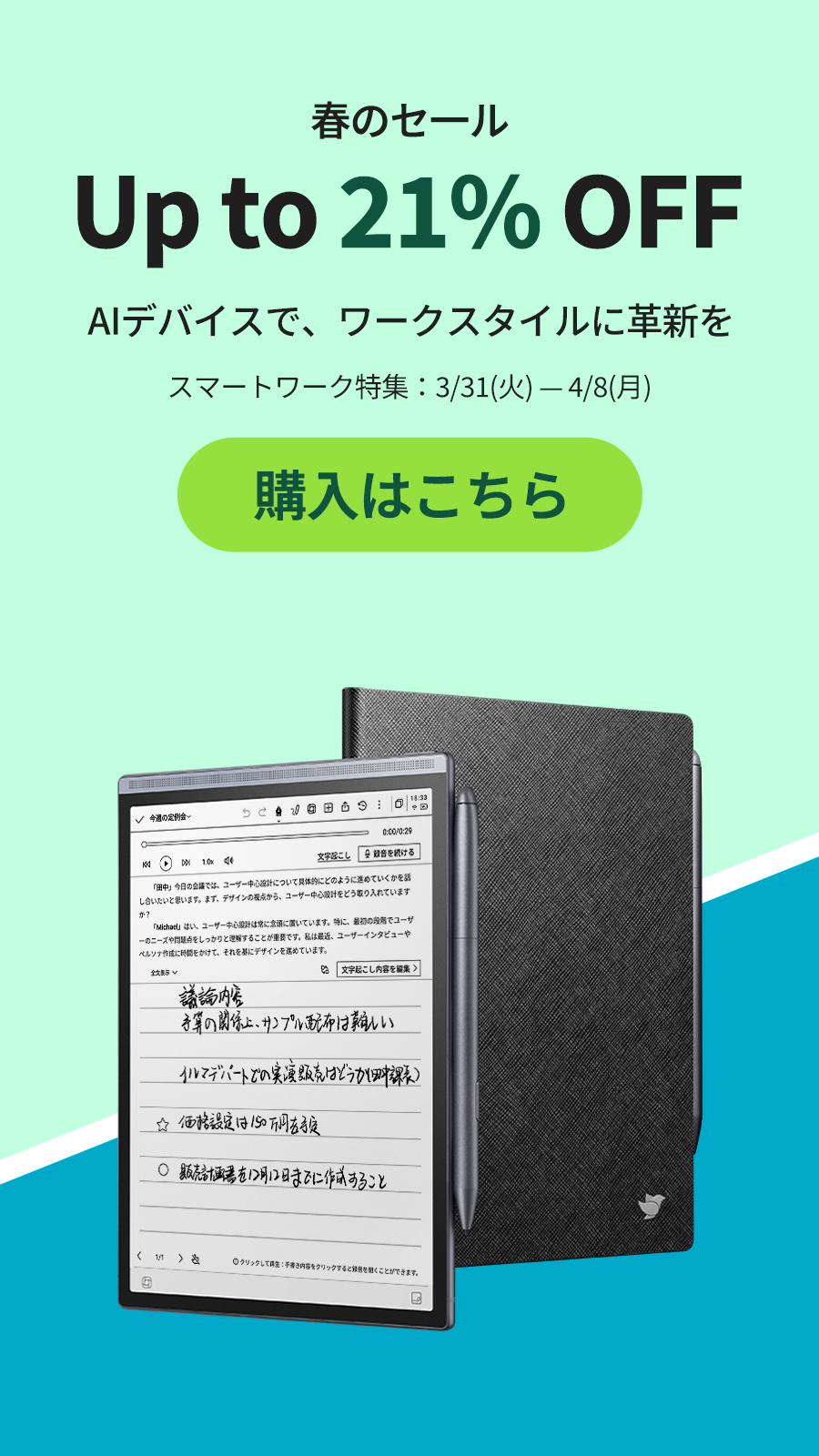 ブランド史上最高傑作・最薄の一枚となる「AINOTE 2 AIスマートノート」は一般発売に先駆け、応援購入サイト【Makuake】にて2025年9月29日(月)より先行予約販売を開始いたしました。