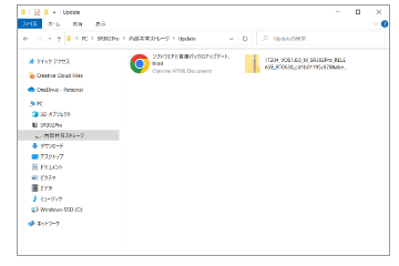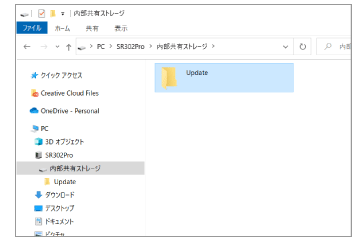 - (PCでの操作)ダウンロード完了後、エクスプローラーを開き、「PC > SR302Pro>内部共有ストレージ>Update」を開く