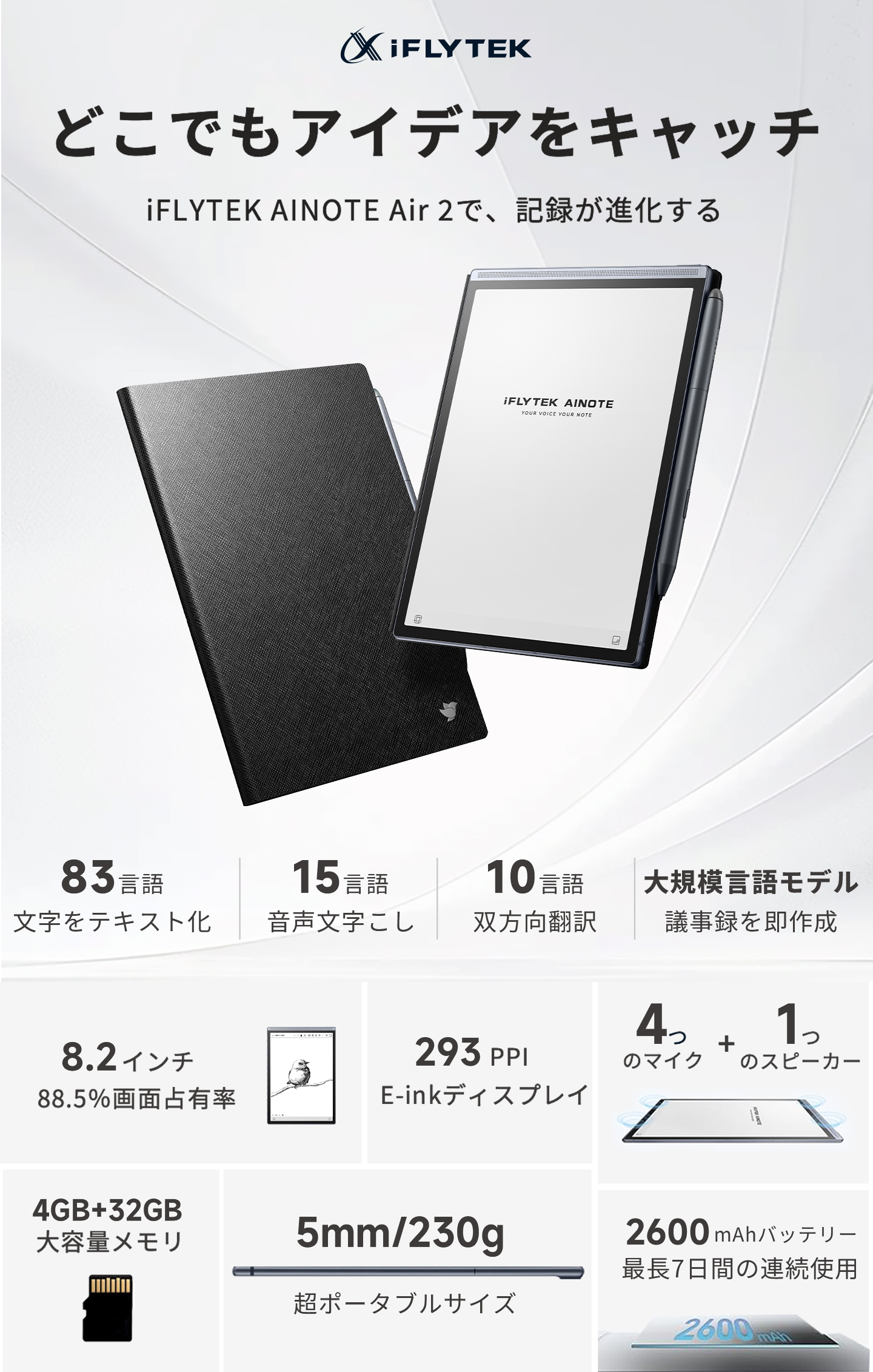 後回し業務をゼロに!効率アップで生産力爆上げ!心強い、賢い相棒:iFLYTEK AINOTE Air 2